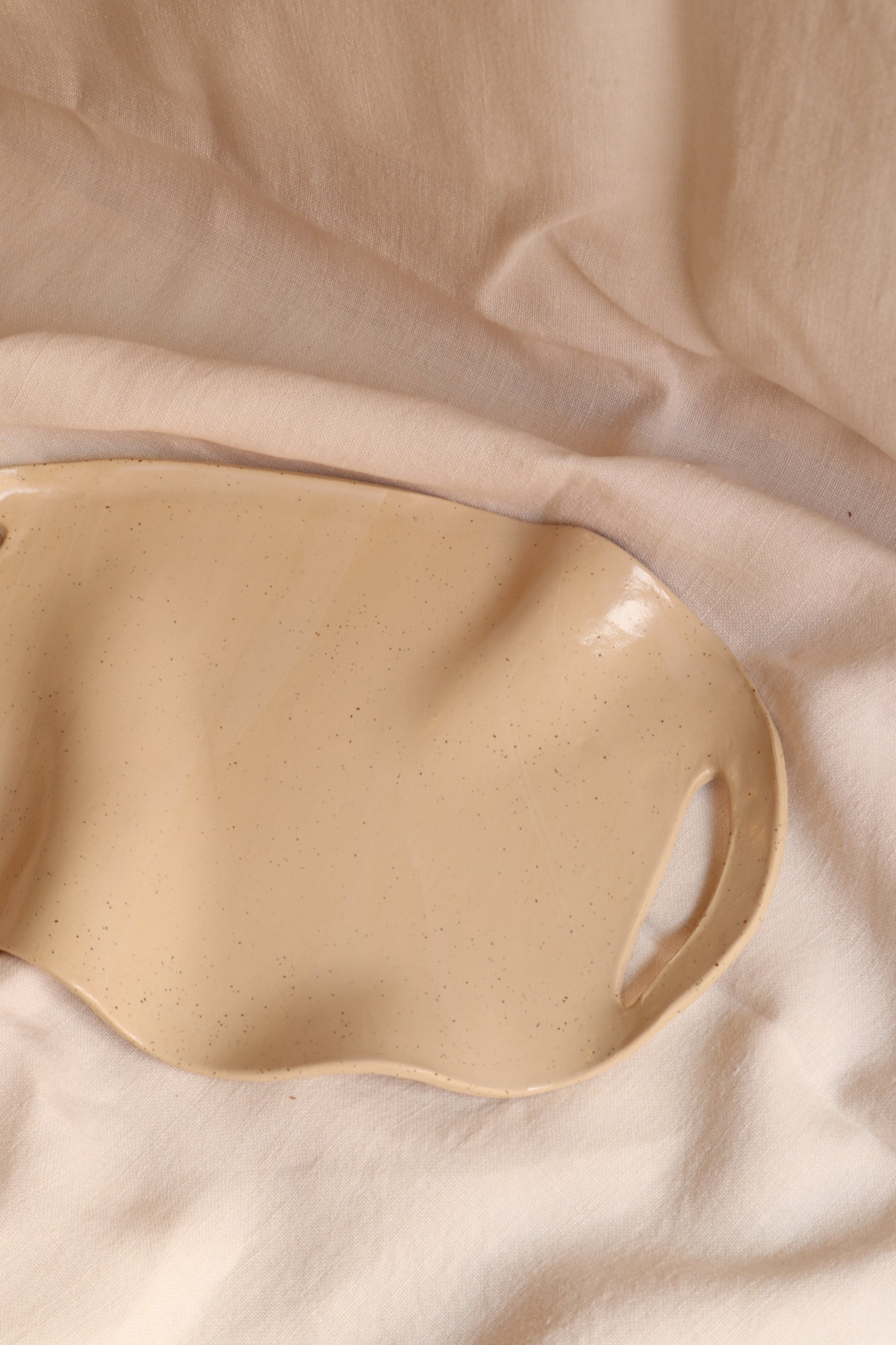 This handmade platter features elegant curves and an organic form, adding a subtle design touch to your table. Perfect for serving snacks or as a decorative piece when entertaining guests.