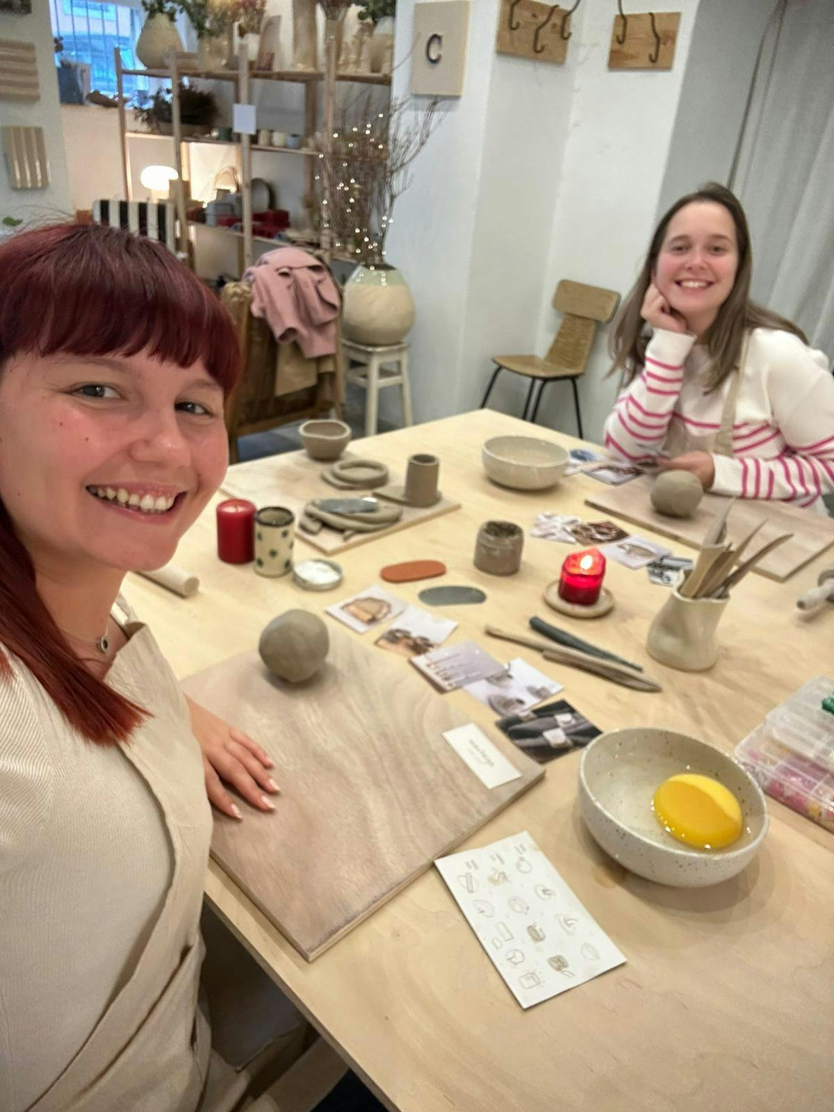 Ao longo de duas horas e meia divertidas e envolventes, vais aprender a moldar, texturizar e decorar as tuas peças, dando vida às tuas ideias. Seja uma caneca, um castiçal ou algo totalmente original, este workshop é uma excelente forma de mergulhar no mundo da cerâmica. Depois de modelares a tua peça, terás também a oportunidade de a pintar e decorar, adicionando o teu toque pessoal.